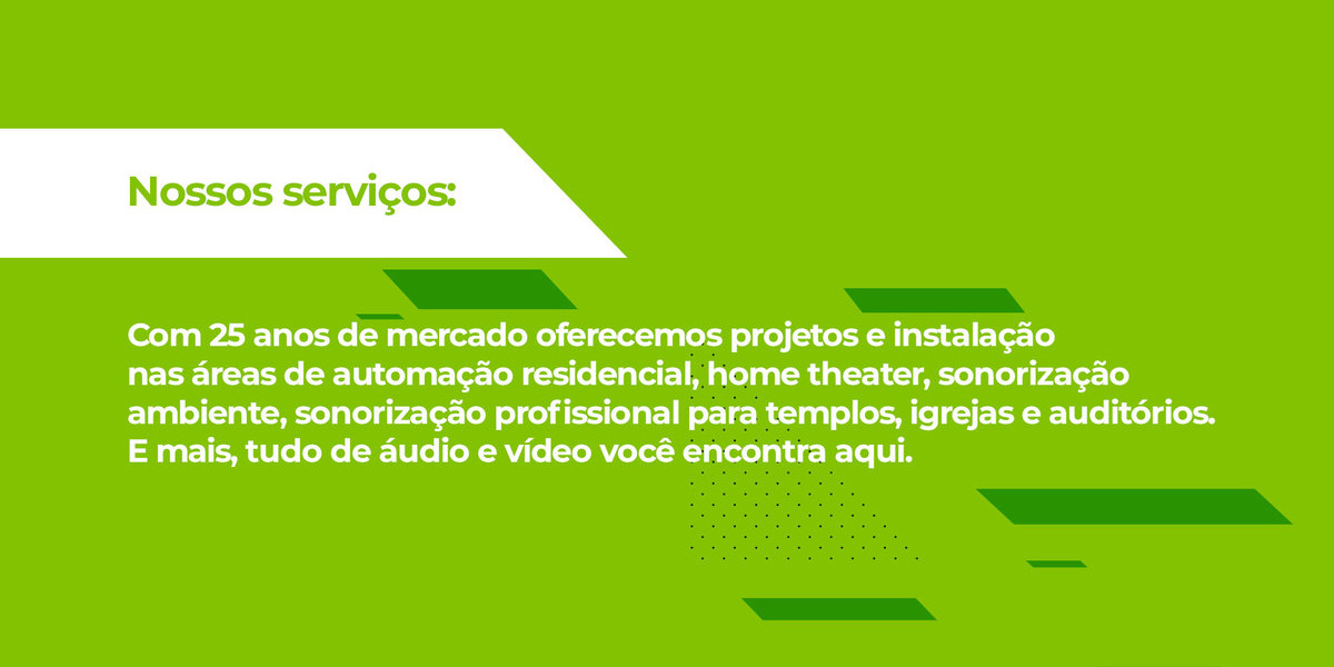 Somos distribuidores das principais marcas de Som Ambiente e especialistas em Sonorização para Escolas, Supermercados, Área de Lazer, Consultórios, Igrejas, Academias, Anfiteatros, Bares, Restaurantes, Residências, Auditórios, etc.
